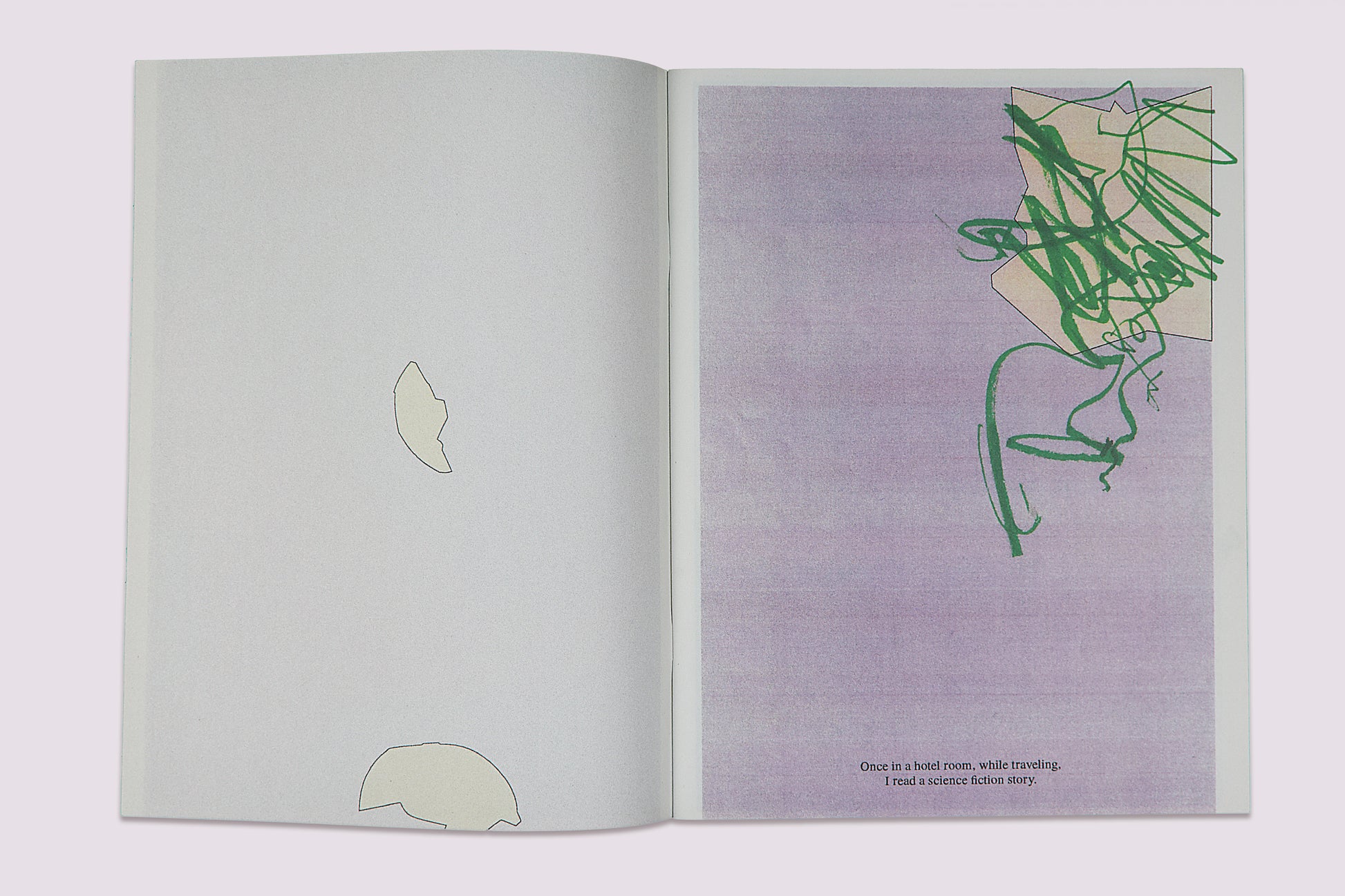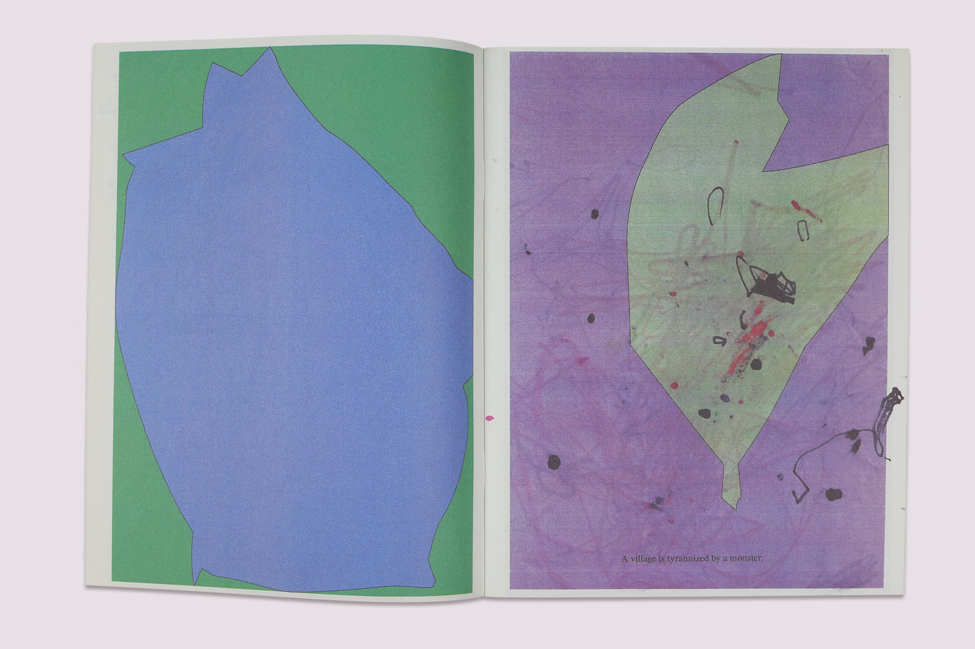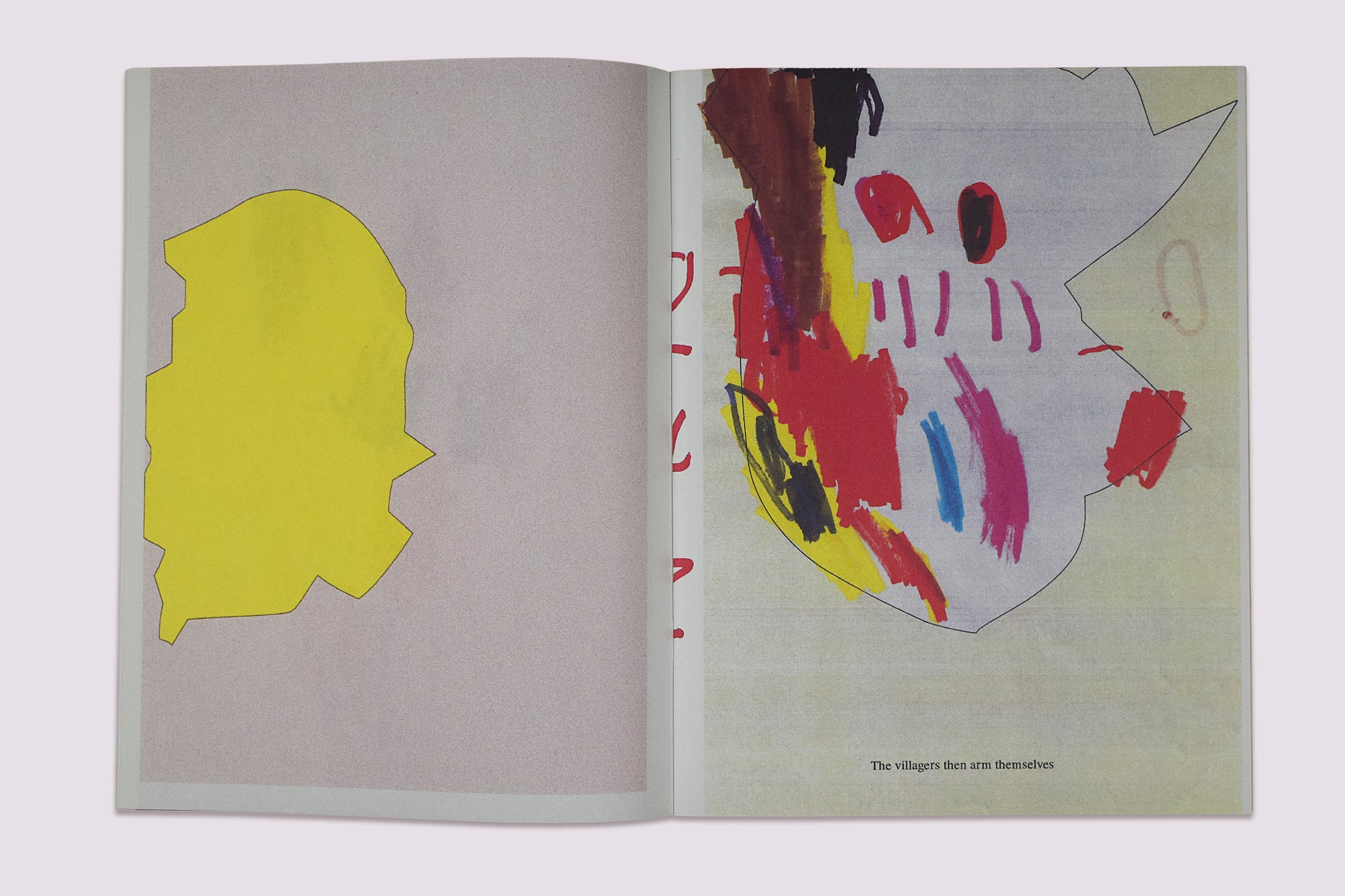 一連の子どもたちのドローイングが、変身という行為を通して村を暴虐な怪物から救う少女の短い物語を語る。物語は、彼女が「作者性」という概念へと変容していくことを抽象的に結末づけるが、それと同時に、本書そのものの作者性についても問いを投げかけている。テキストは、アーティストのMijia Wangが映画『Erzählen』(1975年)の字幕から借用したものである。Kai Udemaによる作品『Bird shaped vinyl』"割れた窓の形をトレースしたシリーズ"への答えとして、Mijia Wangは幼児クラスの子どもたちを招き、Kai Udemaの収集した形の複製の上にドラゴンを描いてもらった。
