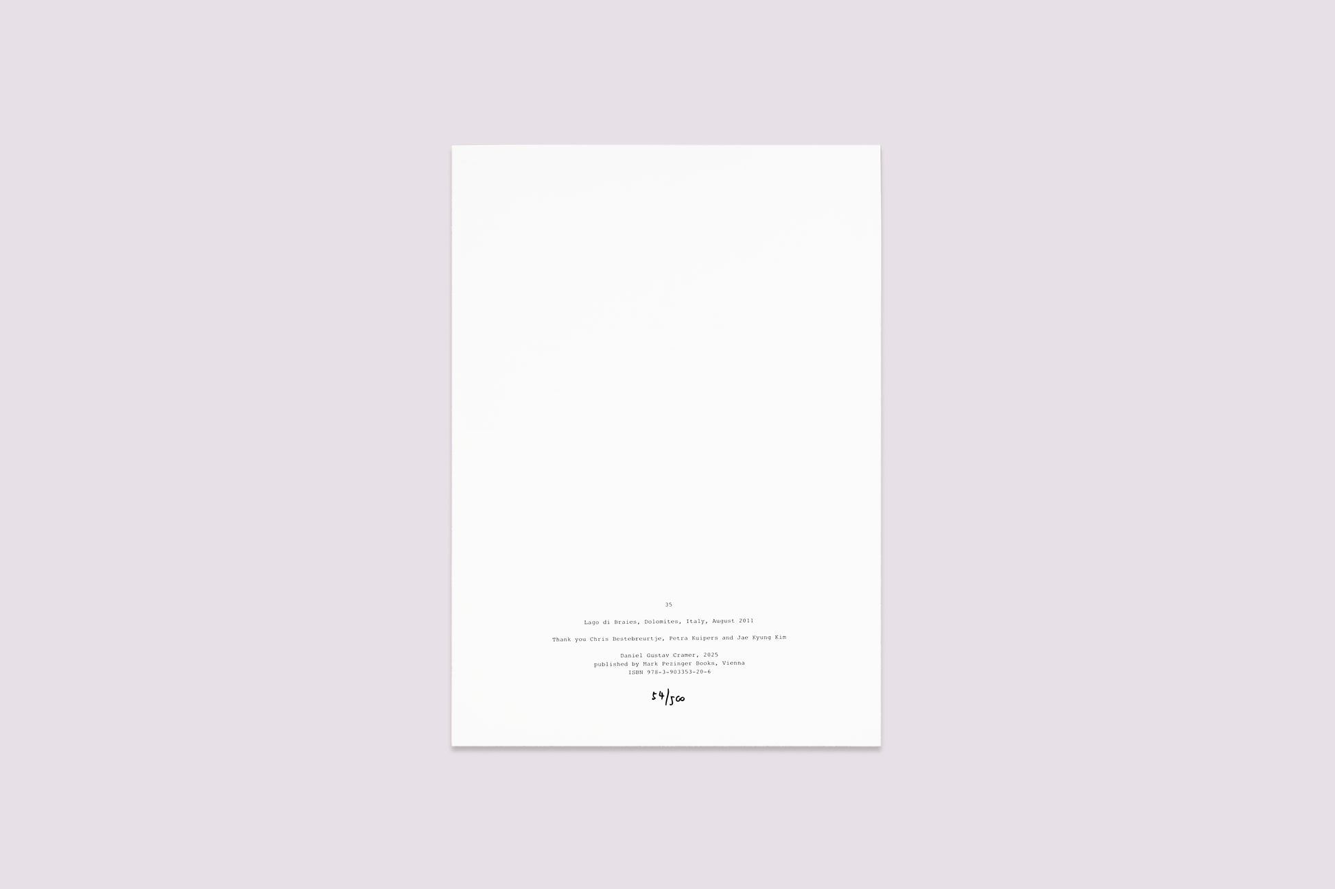 “Every photograph I take is taken with the hope that a possible narrative will unfold. Later, in the studio, I can see whether a sequence can actually be found that will yield a small story from the various pictures – or from one individual photograph. It is through repetition of a similar image that these narratives begin to emerge. Often almost invisible changes can generate the most intense moments.” ー Mark Pezinger Books