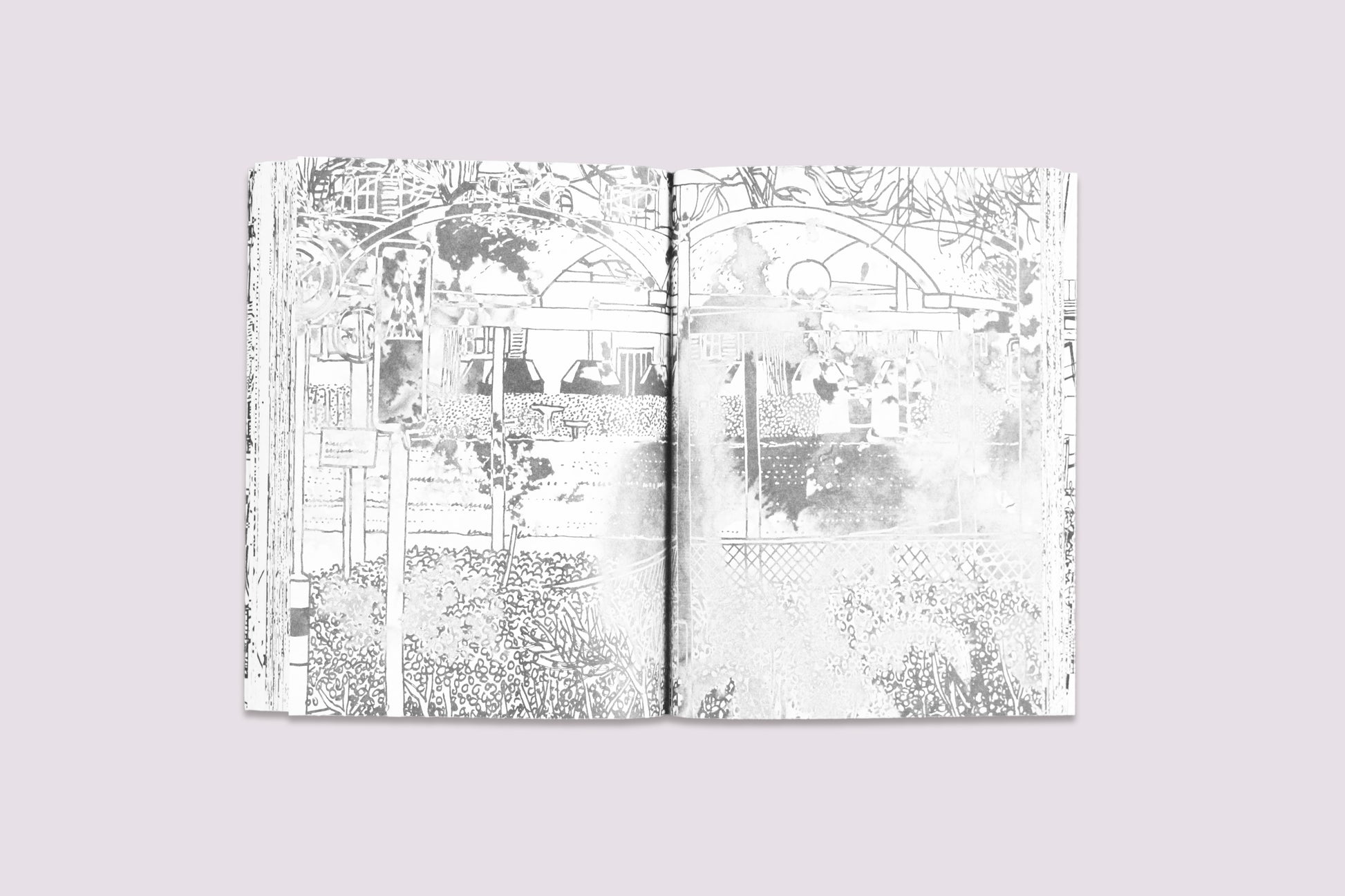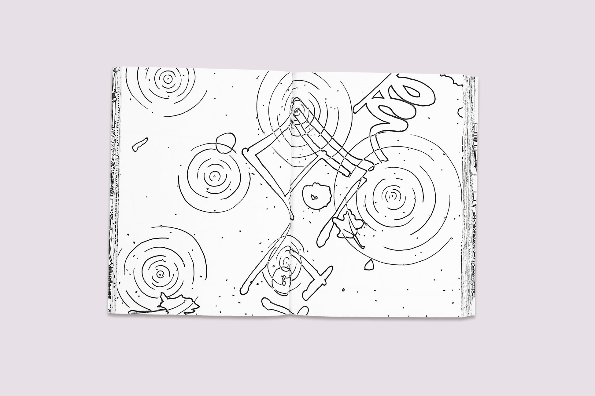 前2作のドローイング・ノベルでは、列車や船で遠く離れた地を訪れた。今回は、自身の生まれ育った親しみのあるホームタウン、チューリヒの街を歩く。チューリッヒの散策では、建物が壊されては新たにつくられる移り変わりゆく街の観察をたどり、そこに暮らす人々の暮らしぶりや形跡をたどる。いたって普通の散策中に雨が降り出すと、生活水準も高く、安全に保たれ、クリーンな2つの川が流れるチューリッヒのはずが、霧雨や雨に打たれたせいで、チューリッヒのドローイングは、簡単にぐちゃぐちゃになってしまった。