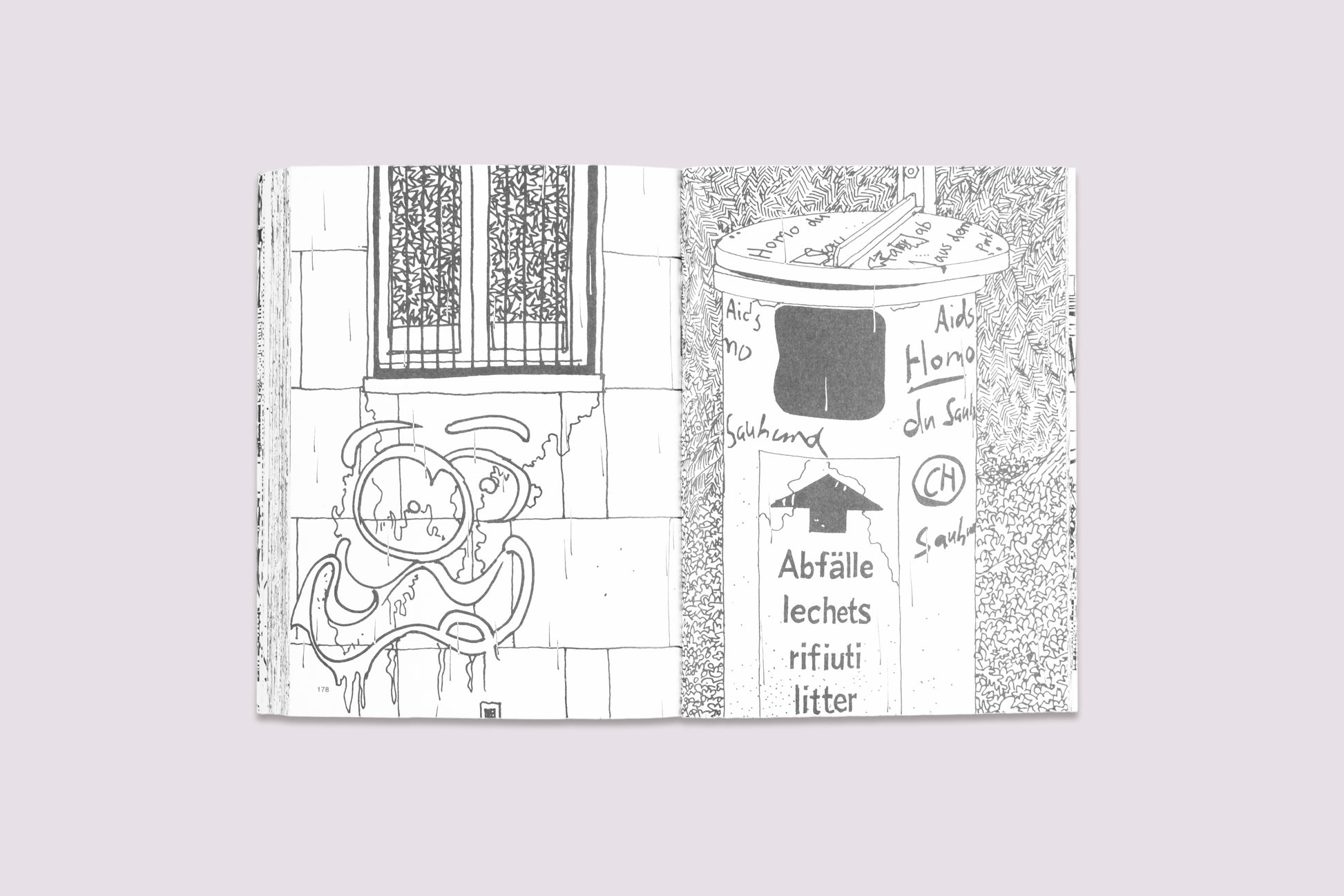 Since 1998, Ingo Giezendanner documents his surroundings with pen on paper. He produces zines, murals, books, exhibitions, video clips and maintains a website (GRRRR.net) to create his own world.